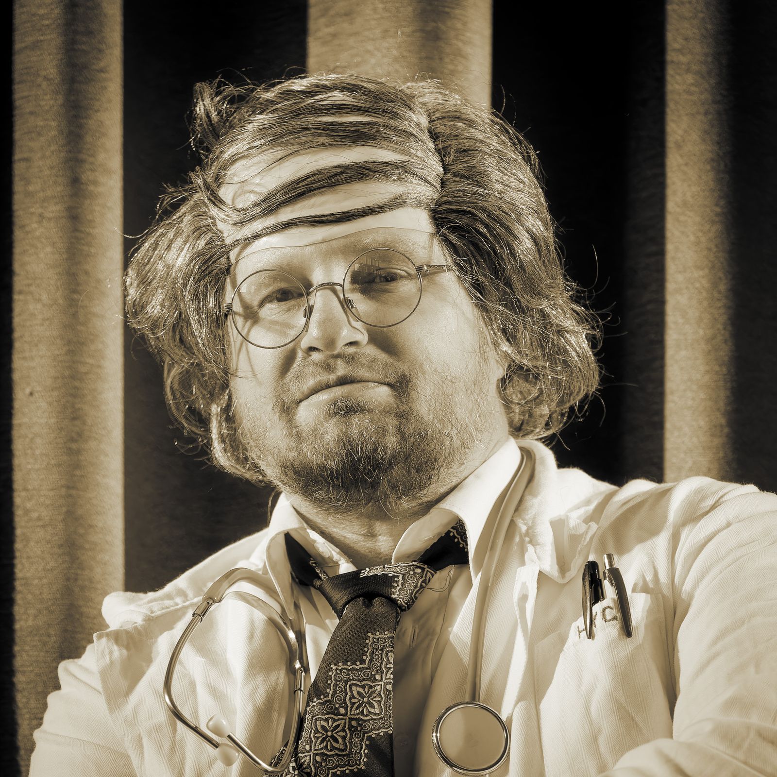 Upon arrival to the theater, I get introduced to all the actors, I walk around the main stage, check the area and lightning it’s your standard cultural center that almost every village in Slovakia has. The director shows me an example of poritrait photo that they would like to achieve, it’s one of those old school portraits that used to be taken from the chest up at 45 degree angle. They want to have those photos in sepia to be as old school as possible for their posters. Without further ado we pick a place with nice backdrop and lighting and I begin to shoot.